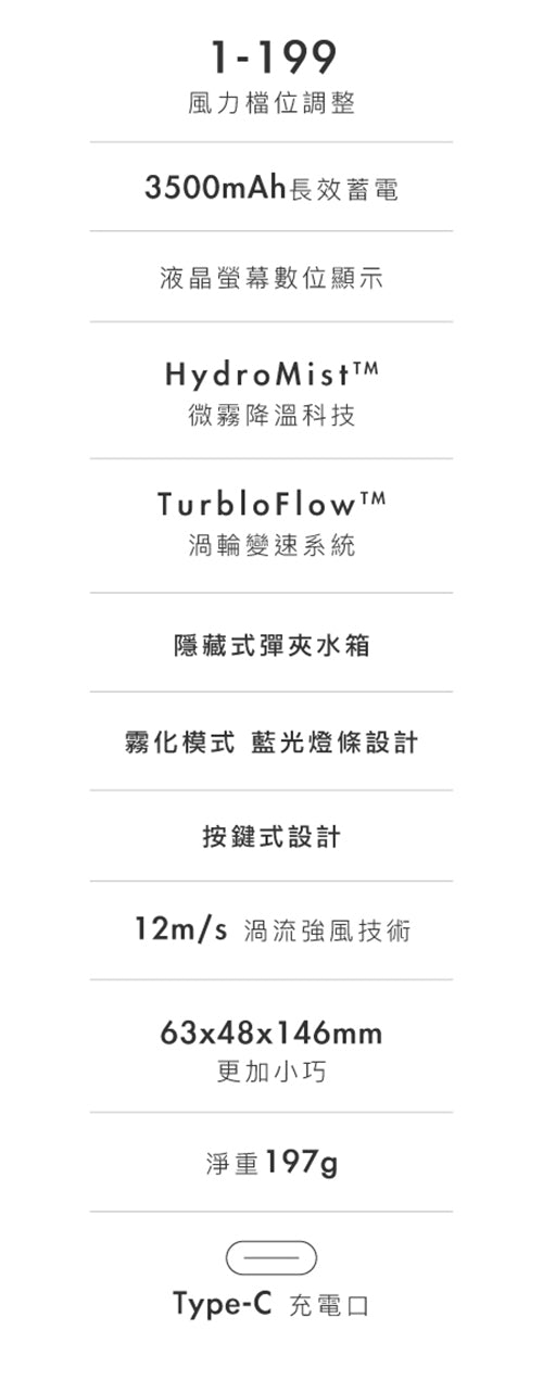 第二代風速調節按鍵設計,再也不怕誤觸;背部複合式電源鍵,秒切換送風、噴霧功能。