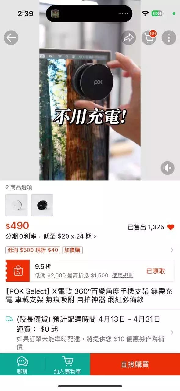 雖然物流出包 又等了一陣子..但商品本身沒問題 但真的要是平面光滑的地方才能吸附都不會掉 但不用充電真的方便多了