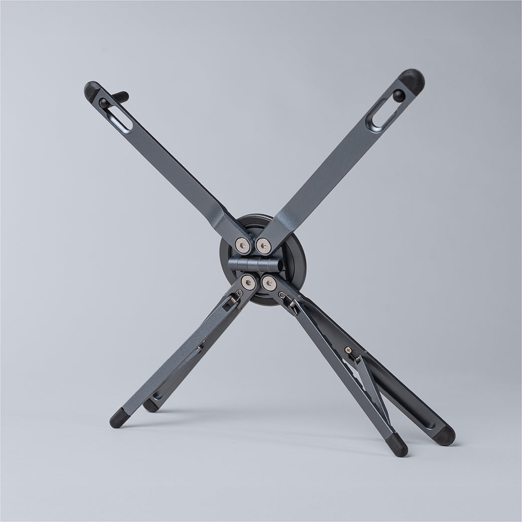 - 使用時請先展開支架主體,依所需角度調整支撐腳與旋轉關節。