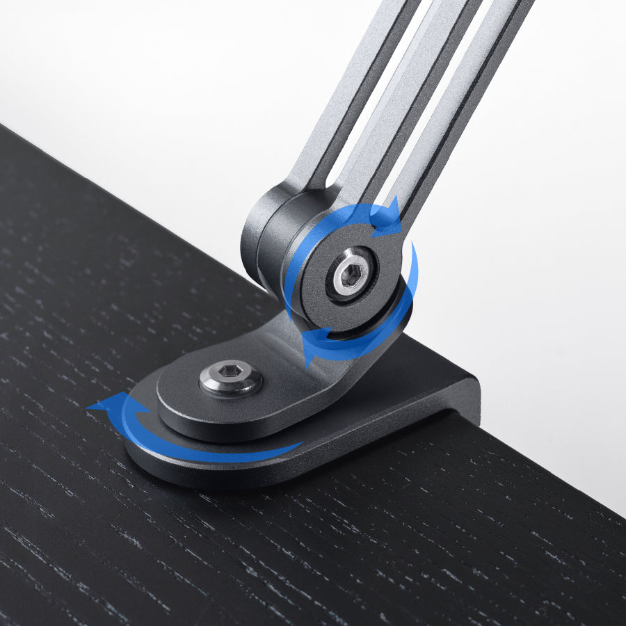 最開可支援厚度 5.5cm 之支撐物,搭配加固旋轉底座設計,提供穩固夾持力道,不晃動、不滑移;一轉即鎖,操作直覺流暢,俐落好用,日常使用更安心。