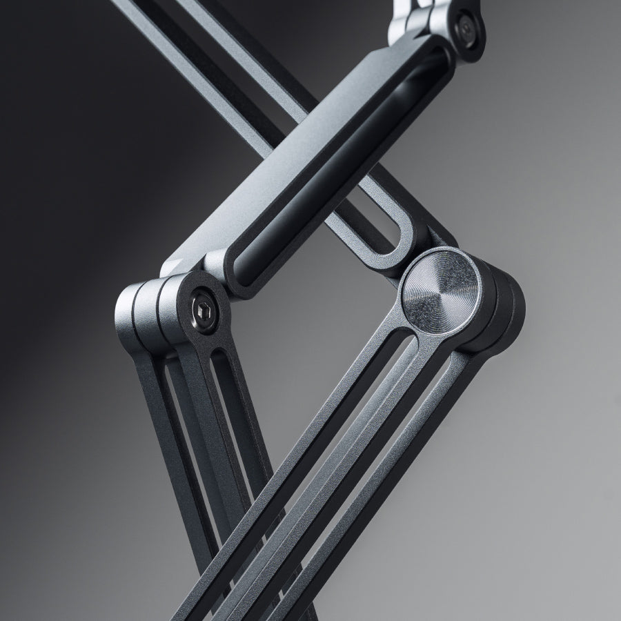 支架採用多軸結構設計,可輕鬆靈活調整至最適合的高度與角度,時時保持最佳觀看體驗。