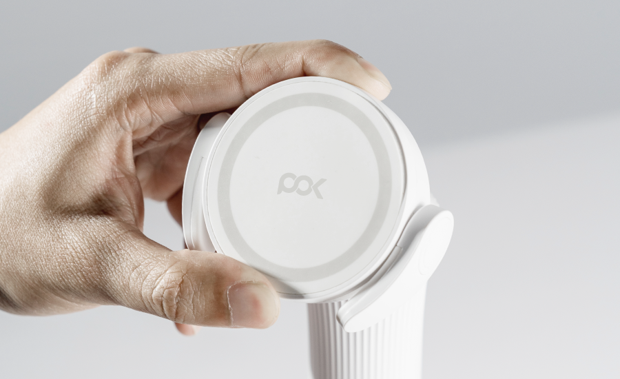 萬能磁吸腳架的包裝設計以細膩圓點排列設計,低調卻富有辨識度,突顯科技感與品牌識別。