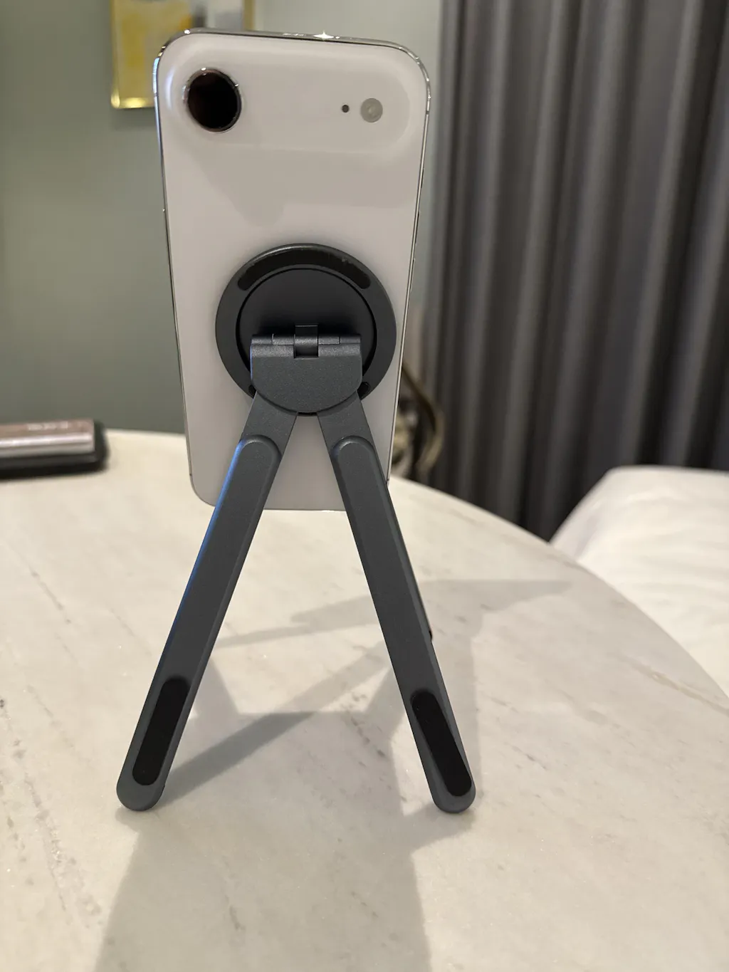 內置磁吸環設計,輕輕一貼即可穩固吸附,讓設備擺放不僅精準又優雅;同時可在摺疊型態下作為自拍棒使用,小巧便攜兼顧多種用途。