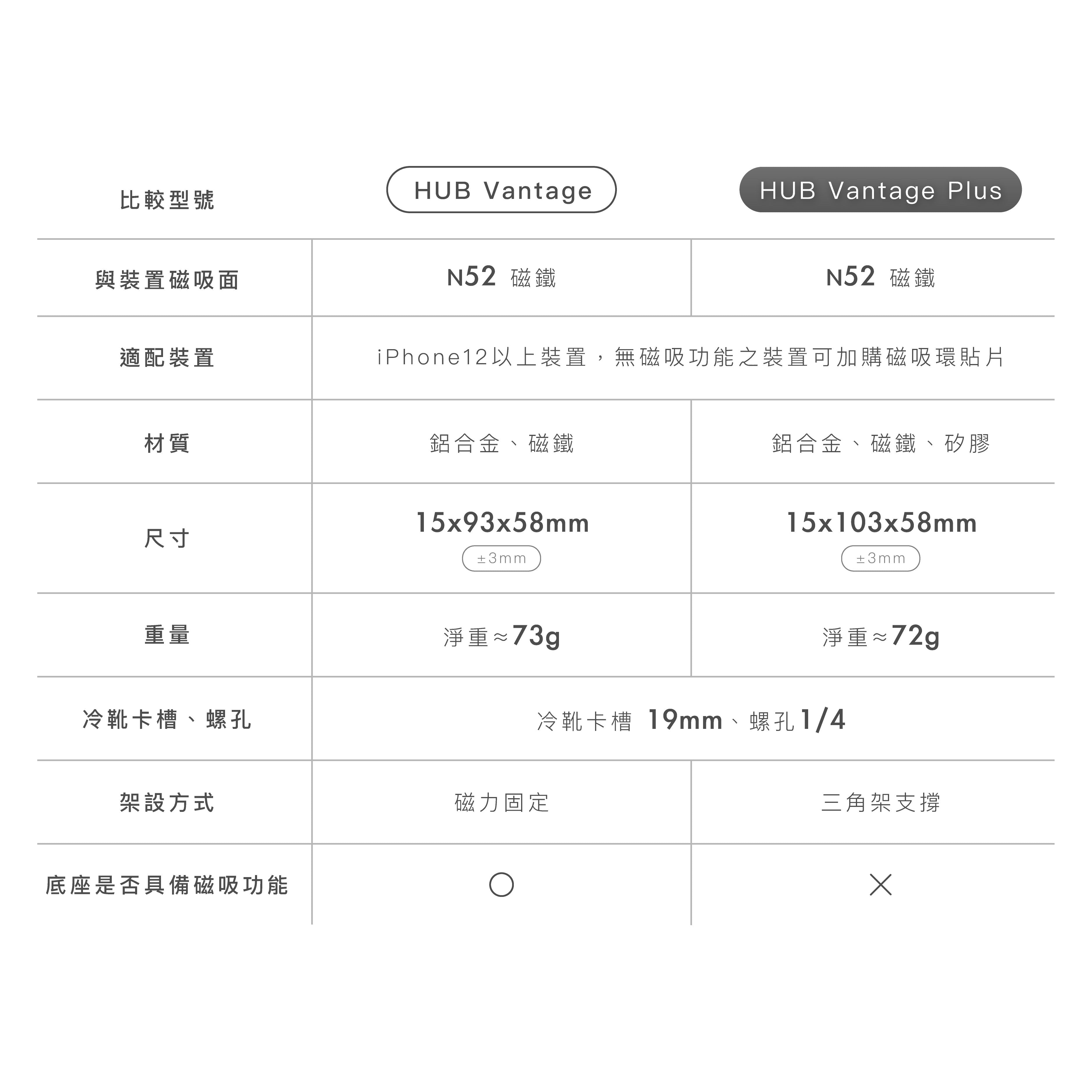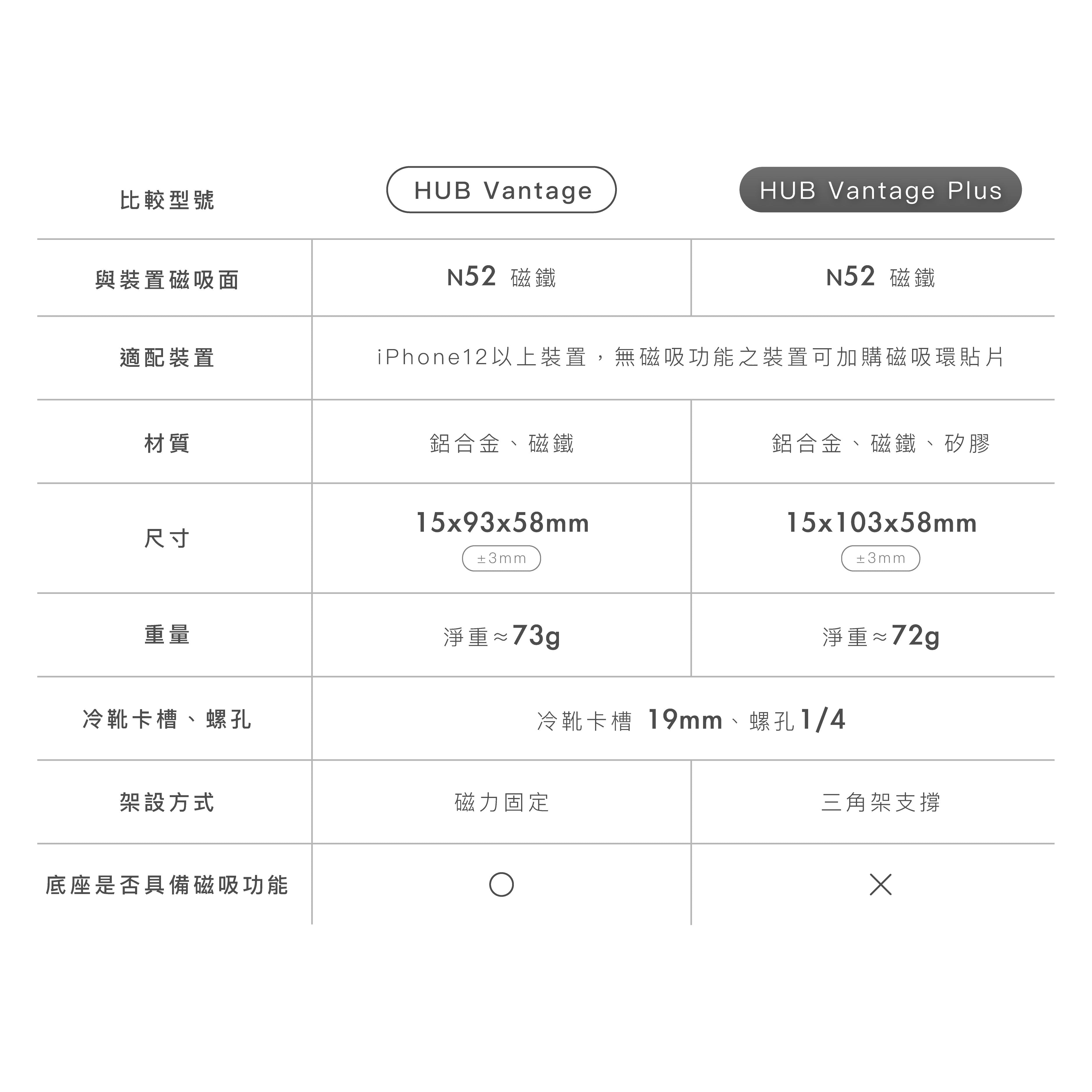HUB Vantage Plus 15x103x58mm ±3mm *以最小體積測量